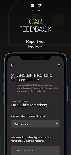 CAR FEEDBACK is an app to report what you like, don’t like or doesn’t work about your car and, in that way, to improve future cars with this feedback. If you are a CUPRA Master and you cannot access the App, please send us an email to [email protected].