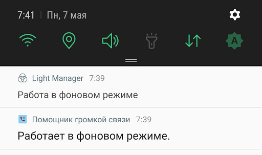 When the application connects to the handsfree, disconnects or finds an error it notifies the user suing the notification bar.