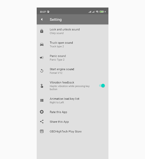 Note: The current this app not connect to control car. It only key fob simulator.