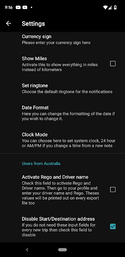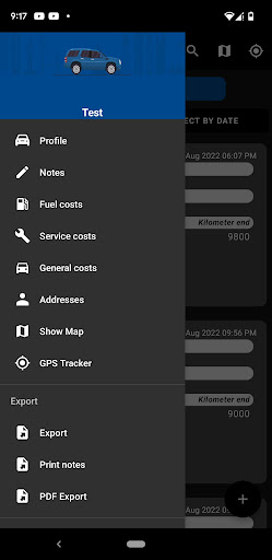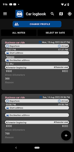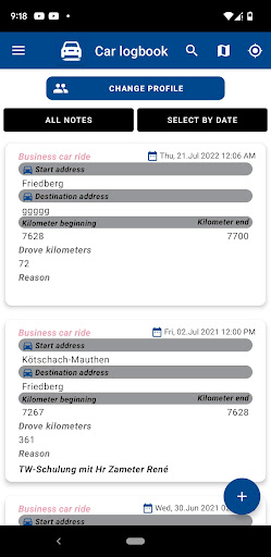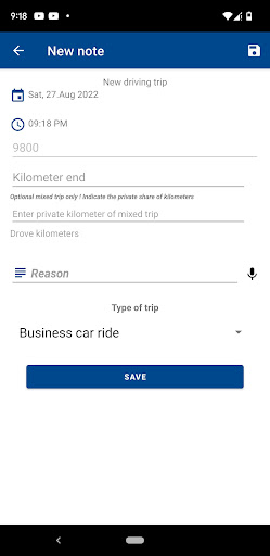– You can enter the start and end kilometers. Indication in Miles would also be possible. In addition, the start and end addresses are available for each entry. Mileage/Kilometers and the number of miles/kilometers traveled (business or private)