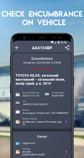20. Information on all types of restrictions on cars. (Debts, arrests, banks, loans)