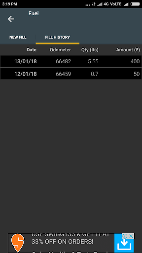 – Log fuel/gas fill up and mileage is automatically calculated