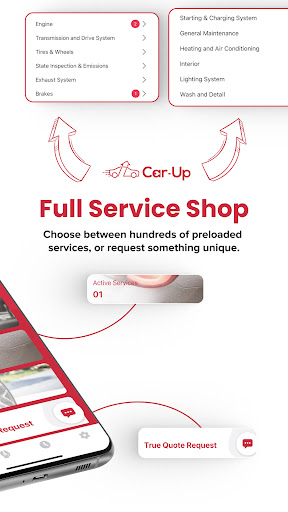 Car-Up is the most convenient and transparent auto repair service on the planet! Car-Up was built to disrupt the industry by providing the highest level of convenience and customer service. At Car-Up, we recognized how painful, inconvenient and time consuming it can be to have your car repaired. Worst of all, the industry has preyed upon consumers who know little about car repair. That’s all about to change! Through the Car-Up mobile application you can choose to have your vehicle picked up directly from your home or work. Best of all, the app provides complete transparency through real time notifications of the repair process. The app also allows our shop to share photos and videos of our technicians working on your car so that you can be confident that our service professionals are always treating you with honesty and integrity. At Car-Up, we’re empowering consumers to take control of their auto repair and maintenance while providing convenience to their lives. HOW IT WORKS: SIGN UP – Download the app or use a web browser to create your user credentials. All communication is done through the power of the Car-Up application so there is no need to call or email! ADD YOUR VEHICLE(S) – Just type in the VIN number of your vehicle and Car-Up will identify all its OEM information and features. (You can find the VIN number on your insurance or registration card, or on the bottom of the drivers side windshield or drivers side door jamb.) CREATE A BOOKING – Car-Up has hundreds of services to choose from! From the list of services, choose the one that best describes your problem OR use the search bar at the top of the page. If you can’t find your problem, go into any menu and at the bottom select ‘OTHER REPAIRS’. SCHEDULE YOUR PICKUP – Schedule the time and date that works best for you, and a Car-Up driver will come pick up your car at your home or work. Alternatively, you can choose to drop your car off or have it towed to our shop. DIAGNOSIS & STATUS – Your car will be evaluated by a certified technician and the shop will communicate this information to you on the STATUS page in the booking. The shop will use this feature to text and share photos and videos of any issues they find with your car. You may also use it to communicate any questions or comments you have about the service. ESTIMATE – After the diagnosis the shop will send an estimate for any suggested work on your car. You can review this information in the booking page and select the services you want to move forward with. If you have any questions, you can continue to use the STATUS page to send messages to the shop. REPAIR – Only the approved repairs are performed, and the shop will notify you once your car is fixed. PAYMENT – When the repairs are complete you will be notified in the app. Use the INVOICE page to pay for the services. DROP OFF – After confirming payment you will be prompted to select the date and time most convenient for you to have your car returned. Alternatively, you can select to pickup your car from the service center. THAT’S IT! – Your service is complete! Your car will be returned to you at your scheduled appointment. You can also view the whole transaction and service history on your account page!