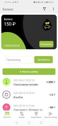 Начисляем кеш-бэки за мойку и сообщаем об акциях.