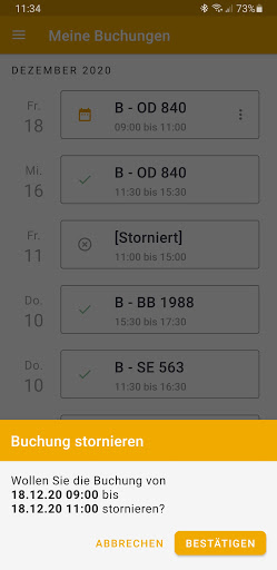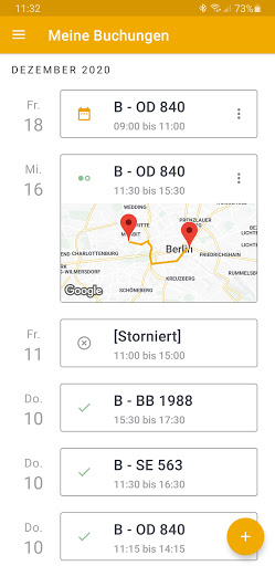 Behalten Sie den Überblick über alle Buchungen und beginnen und beenden Sie Ihre Fahrten komfortabel über die App-Funktionen.