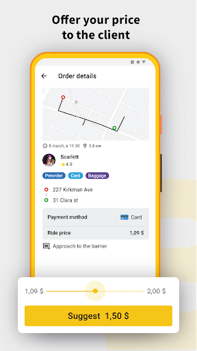 Install the application, fill in the route and set a fair price for the trip yourself.