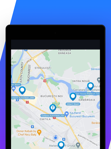 Prin dispozitivul dumneavoastră mobil aplicația vă ajută să navigați catre cea mai apropiată spălătorie, atelier de anvelope sau stație ITP din rețeaua CarCentric.