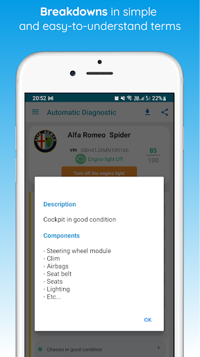 – Automatic Diagnostic OBD2: Equipped with an OBD2 bluetooth device (easy to get and available for less than 10$), CarDiag provides a complete list of your car problems in simple and easy-to-understand terms.