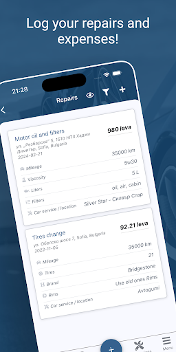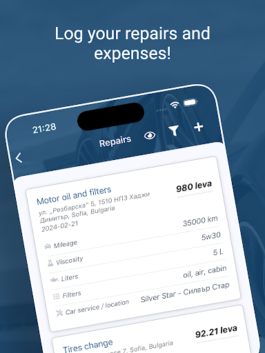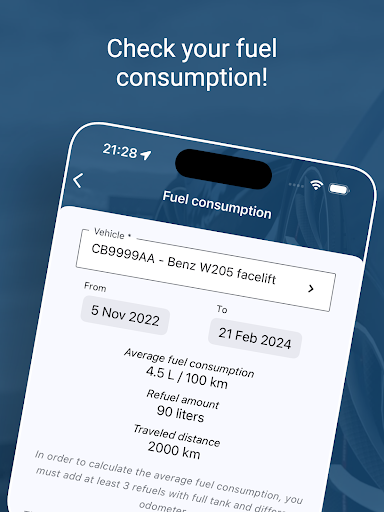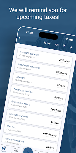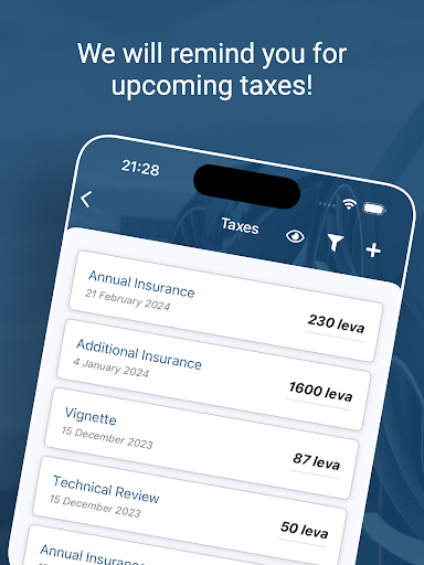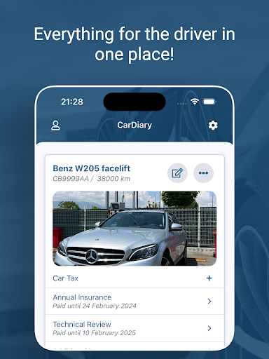 Everything for the driver in a single app! Keep track of your vehicle spending for the last week, month or year. Control the refuel and be reminded of the mandatory fees / taxes – vignette, annual technical inspection, vehicle tax, annual insurance and more.
