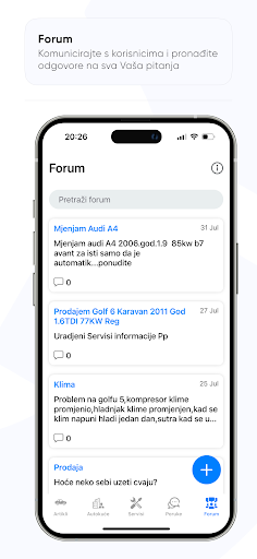 Tu je i forum na kojem možete postavljati razna pitanja iz svijeta automobila. Treba Vam savjet, preporuka ili mišljenje drugih korisnika u vezi posjedovanja ili održavanja automobila? Postavite pitanje i svi zajedno ćemo razmijeniti iskustva i preporuke.