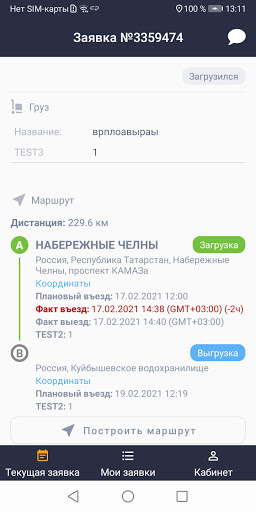 – использовать навигацию по маршруту, проложенному логистом (экспериментальная функция).