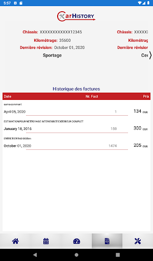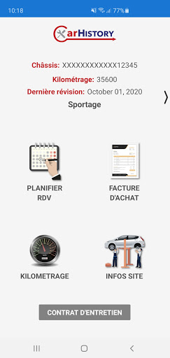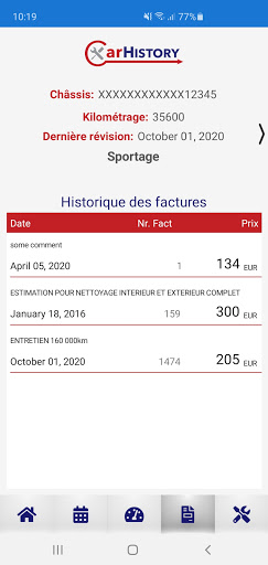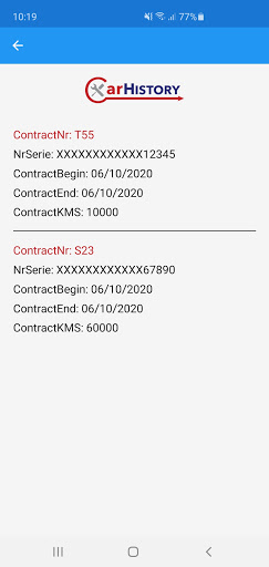 CarHistory application allows user to check invoices and maintenance contracts which gets from cars service, enter new mileage of his car and gets info of the car service. Entering new mileage helps the car service to inform user when is time for service.