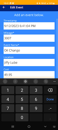 CarLog allows you to save a running log of all events with your car, truck or other motor vehicle. After defining a vehicle to CarLog, you simply tap the name of your vehicle on the front page of the app, and then add events as needed.