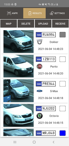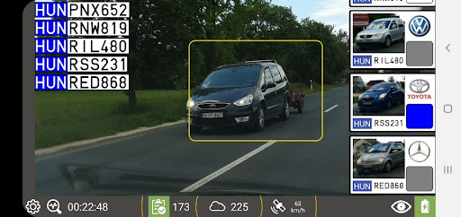 The application allows you to use your mobile phone camera to collect license plate recognition (ANPR/LPR) data, even from fast-moving vehicles. Events stored in the internal database include license plate and optionally, class, brand, model, color, GPS data, and timestamp.