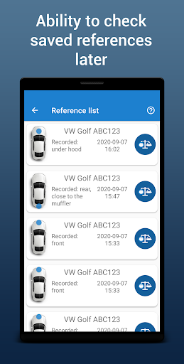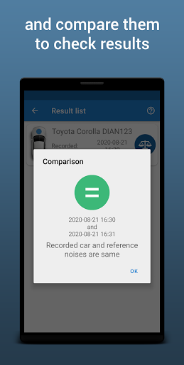The app needs permission to record audio, so that you could be able to record your car’s making noise and check comparison results. All the data (saved cars and references) are stored locally in your device.