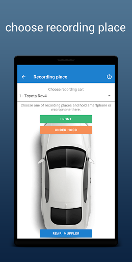 • Press [Record] and press on button with wanted recording place name (front, under hood or rear, close to the muffler). When you press button, the app will start recording immediately.