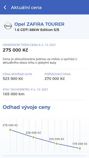 ◉ Prověří historii a zobrazuje aktuální cenu auta.