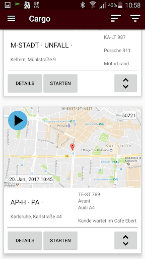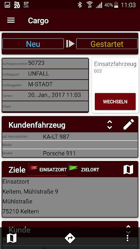 Mit dieser App kann der Pannenhelfer bzw. Fahrer nicht nur die ihm gesendeten Aufträge ansehen und mit seinem Disponenten den Ablauf der Arbeiten melden, sondern auch inhaltliche Änderungen vornehmen, neue Orte suchen, und sich zu Einsatzort und/oder Ziel leiten lassen