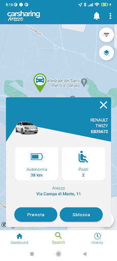 L’app permette di effettuare prenotazione, prelievo e rilascio dell’auto con pochi e semplici click. Per maggiori informazioni vedi: https://arezzo.targatelematics.com/.