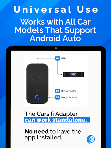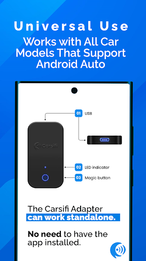 Carsifi Wireless Android Auto is a companion app for the Carsifi wireless android auto adapter which eliminates the need to connect your phone to the Android Auto USB port with a cable. Instead, your car detects Carsifi adapter as an Android device and starts transferring data which Carsifi reroutes to your Android device via Wi-Fi.