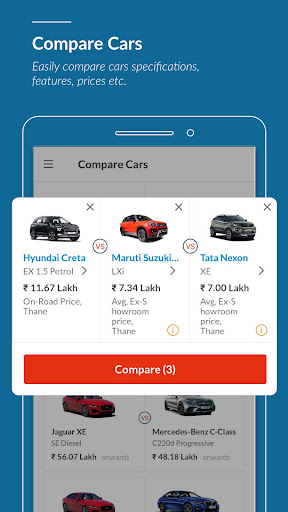 • Compare Cars – Best car comparison app for comparing prices, features, specifications and colours