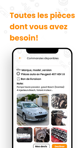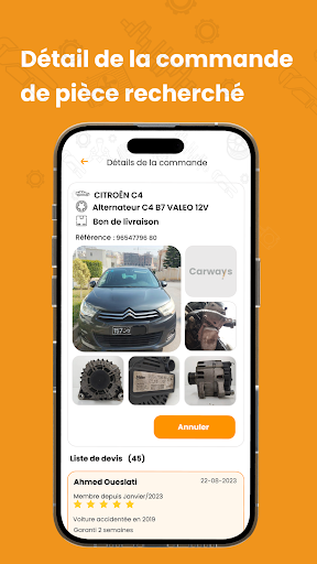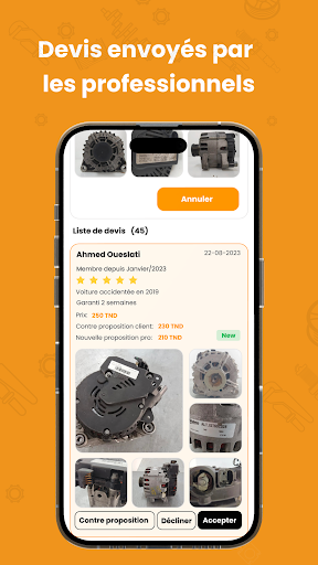 2) Les professionnels de Casse auto visualise votre demande et vous envoie des devis. chaque devis contient un prix, description, la garanti et des photos de la pièce proposée