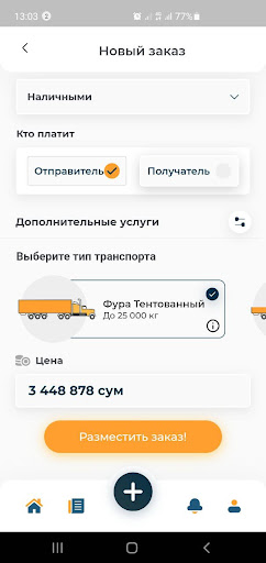 Ваш заказ мгновенно увидят тысячи наших водителей, которые отвечают требованиям по перевозки именно вашего груза, после приема водителем вашей заявки, он становится вашим исполнителем заказа, и вы можете отслеживать статус доставки в рамках вашего заказа как по статусам, так и по геолокации перевозчика.