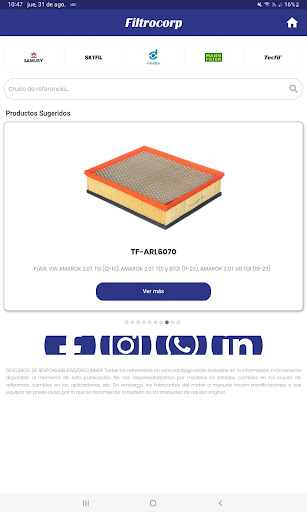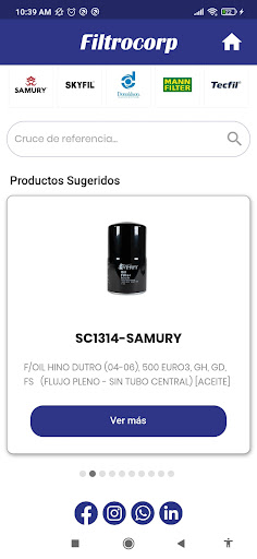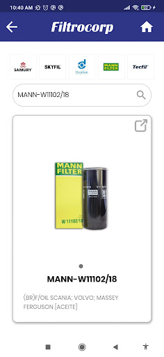 Catálogo de Filtros Filtrocorp aplicación móvil ofrece la búsqueda de filtros de Vehículos mediante la digitación de código del filtro o referencia del vehículo.