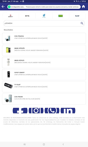El resultado de la búsqueda muestra los productos que ofrece filtrocorp a sus clientes.