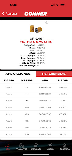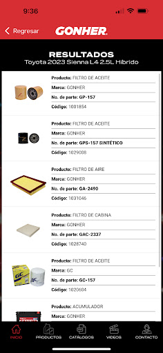 Descarga la aplicación de Catálogo GONHER para consultar nuestros productos, filtros, baterías, balatas, bujías, limpiaparabrisas y más.