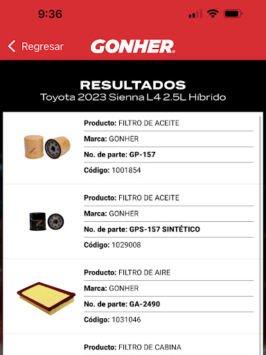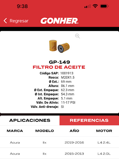 Herramienta práctica para consultar de manera fácil, rápida y sin costo aplicaciones para todos los vehículos por marca, modelo, año y motor. También podrás encontrar información acerca de todos los productos GONHER, fichas técnicas, catálogos y equivalencias.