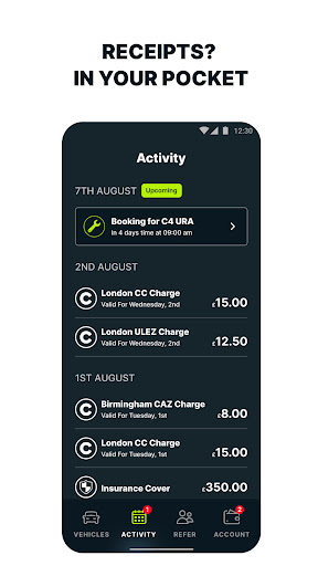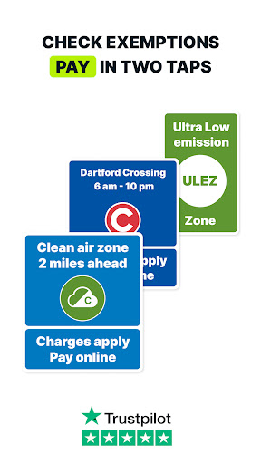 3) City charges, roads and tolls: check whether you’re exempt from all the city charges and make ultrafast payments for charges like London’s Congestion Charge and ULEZ charge or Clean Air Zones like the ones in Bristol, Birmingham, Bath, Portsmouth and Newcastle.