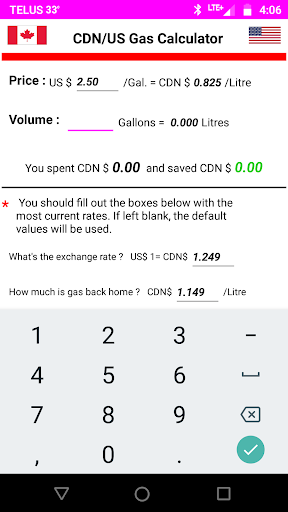 You can also enter the price of gas back home to find out how much you saved. This price is also saved until you change it.
