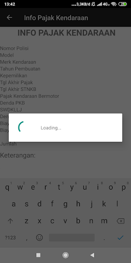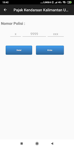 Jika nomor polisi valid maka aplikasi akan menampilkan besar tagihan pajak kendaraan anda. Akan tetapi, jika plat nomor yang dimasukkan tidak valid, maka sistem akan menolaknya secara otomatis.