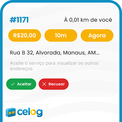 Celog – Profissional Aplicativo destinado à profissionais que prestam serviços de entrega. Este aplicativo precisa capturar sua localização em segundo plano; para que você seja localizado pelo sistema quando houver serviços próximo de você.