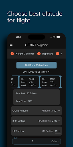 In our app we provide calculations which you can use to find specific data. Best feature of the app is planning a flight from departure airport to the landing runway which combines the all calculations from Top of climb to Top of descend points. And our smart AI tool provides best altitude for your flight. This feature is unique to our app and saves time and fuel. You can save money on your each flight. After you plan a flight you will get a flight report for it. This flight report will include route METARs, TAFs, NOTAM data, route Winds Aloft and Temperature data, Frequency List for your arrival and departure airports. You will get every data you need for your flight. Also you can view this flight data, or share with others.
