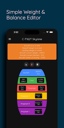 Also we provide you easily editable Weight & Balance data. Tap the seat and weight. You can edit even aircraft baggages too. You can see your aircraft Weight & Balance data on the graph too.