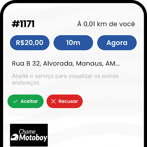 Este aplicativo recebe os serviços solicitados neste site: https://chamemotoboy.com. Transporte de objetos nas regiões centrais, bairros e toda grande São Paulo, Brasil. Para você receber os serviços é necessário instalar o aplicativo, se cadastrar, depois aguardar nossa equipe ativar o seu cadastro.