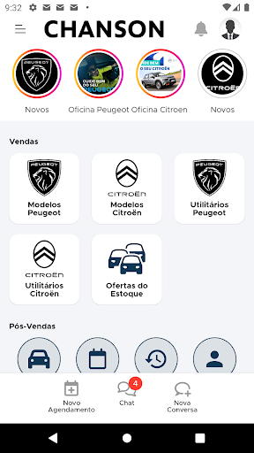 Você pode agendar seu veículo, consultar estoque de novos e usados, visualizar histórico de ordens de serviço.