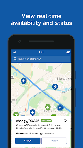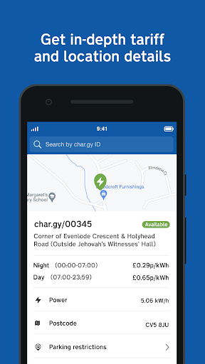 Use your current location or search by char.gy ID to find available charge points in your area.
