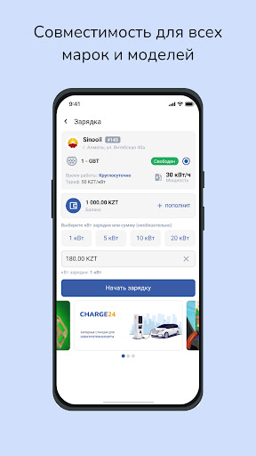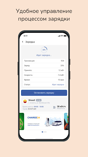 Управление зарядкой: Приложение предоставляет возможность запускать, останавливать и мониторить процесс зарядки прямо через мобильное устройство.