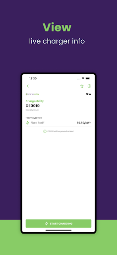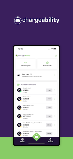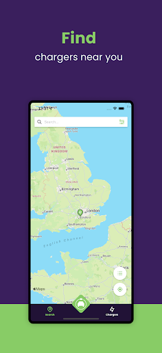 – Identify nearby chargers via charger list or a map view