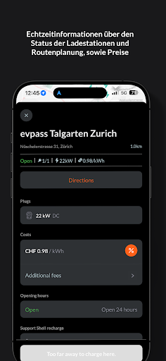 – Erhalte alle Informationen zur Ladestation (Ladegeschwindigkeit, Steckertyp, Ladetarife, uvw.)