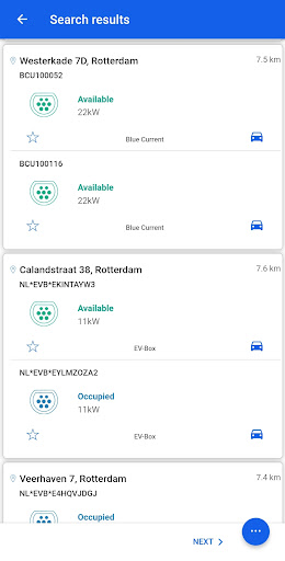 Search by city, zip code or charging station number. Use the search list for an overview of the charging stations that are currently available to you.