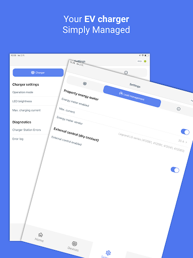 Charger Control allows you to configure and manage Legrand Group EV chargers like (Ensto One & One Home charging stations or Legrand home charging station) with Bluetooth technology on your smartphone. In the application, the functionalities are grouped into clear entities that allow you to manage power, start/stop charging, adjust various parameters and monitor charging event. App also allows updating the charging station firmware once new software is available.