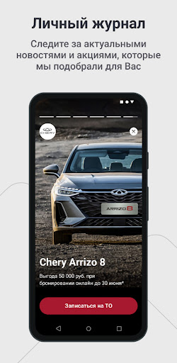 В приложение для Вас попадают индивидуальные выгодные предложения и акции от официального дилерского центра CHERY.