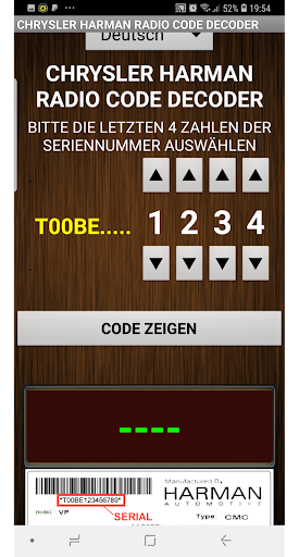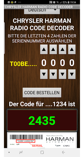 Radio Code Decoder für Chrysler Harman mit der Seriennummer T00BE………