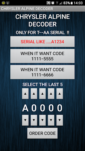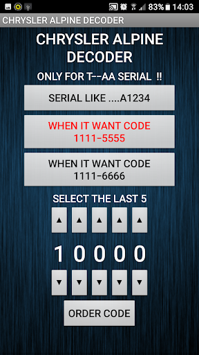 Chrysler Alpine Radiocode Decoder für Seriennummer T–AA…….