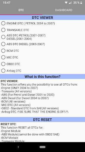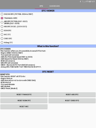 You will be able to RESET DTC of: