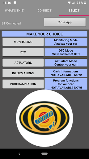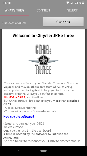 This software is able to read DTC and monitor your Chrysler Town and Country from 2001 to 2007, and eventually many others cars of Chrysler/Dodge/Jeep company.